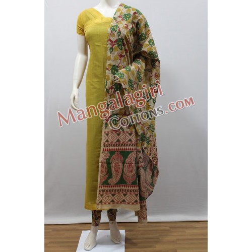 Mangalagiri Handloom Cotton Nizam Border Top with Cotton Kalamkari Bottom and Dupatta. Unstitched 3 Pieces Set: