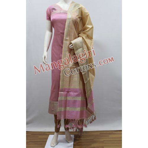 Mangalagiri Handloom Semi Pattu Dress Material with Silver Zari Border. Unstitched 3 Pieces Set:
