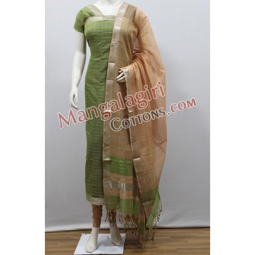 Mangalagiri Handloom Pure Cotton Zari Check Dress Material with Silver Zari Border. Unstitched 3 Pieces Set.
