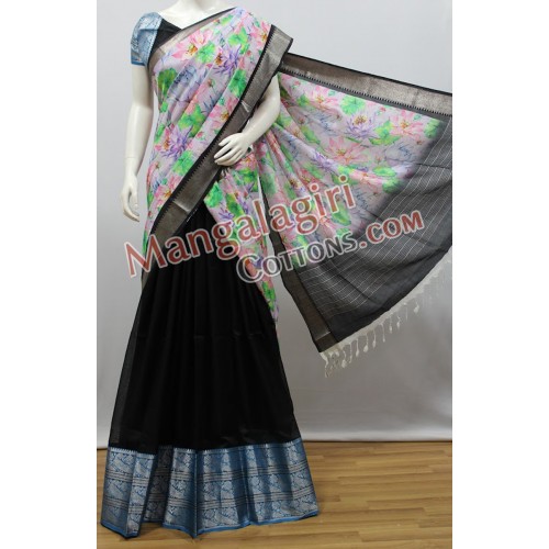 Mangalagiri Pure Handloom Semipattu Digital Print Langa Voni Set. Set comes with unstiched blouse piece.