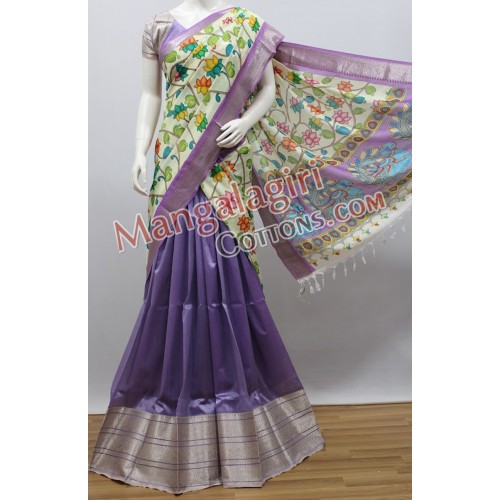 Mangalagiri Pure Handloom Semipattu Digital Print Langa Voni Set. Set comes with unstiched blouse piece.