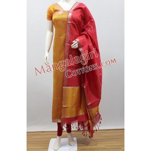 Mangalagiri Handloom Semi Pattu Dress Material with Silver Zari Border. Unstitched 3 Pieces Set: