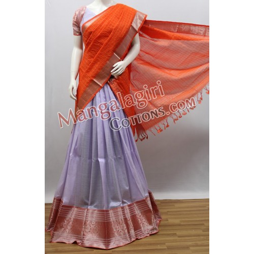Mangalagiri Pure Handloom Semipattu Langa Voni Set. Set comes with unstiched blouse piece.