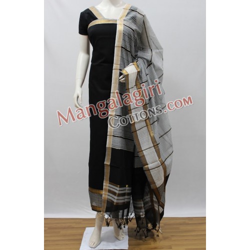 Mangalagiri Handloom Pure Cotton Dress Material with Gold Zari Border. Unstitched 3 Pieces Set.