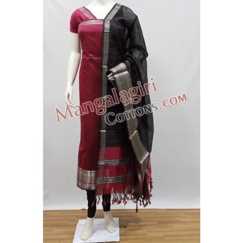 Mangalagiri Handloom Semi Pattu Dress Material with Silver Zari Border. Unstitched 3 Pieces Set: