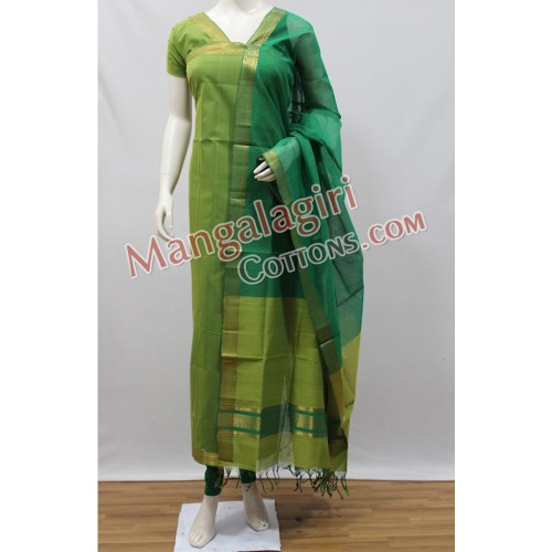 Mangalagiri Handloom Pure Cotton Dress Material with Gold Zari Border. Unstitched 3 Pieces Set.