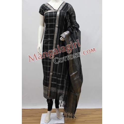 Mangalagiri Handloom Semi Pattu Dress Material with Silver Zari Border. Unstitched 3 Pieces Set: