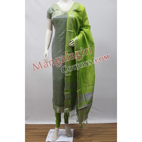 Mangalagiri Handloom Semi Pattu Dress Material with Silver Zari Border. Unstitched 3 Pieces Set: