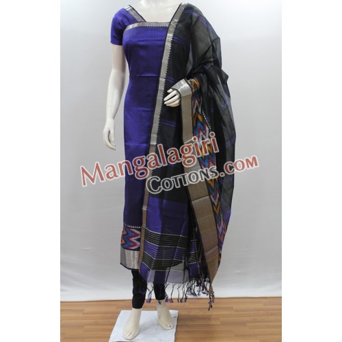 Mangalagiri Handloom Semi Pattu Pochampally Dress Material with Silver Zari Border. Unstitched 3 Pieces Set.