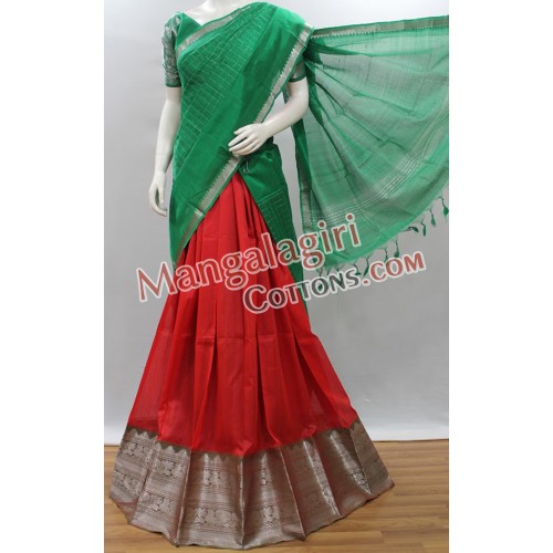 Mangalagiri Pure Handloom Semipattu Langavoni Set. Set comes with unstitched blouse piece.