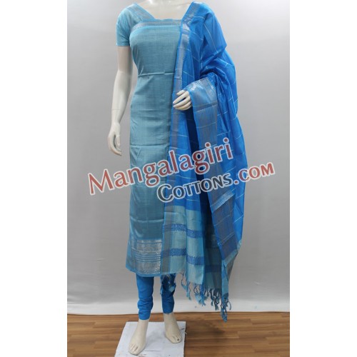 Mangalagiri Handloom Semi Pattu Kanchi Dress Material with Silver Zari Border. Unstitched 3 Pieces Set.