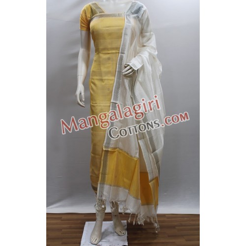 Mangalagiri Handloom Semi Pattu Butta Dress Material with Silver Zari Border. Unstitched 3 Pieces Set.