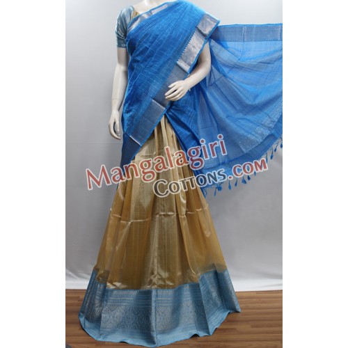 Mangalagiri Pure Handloom Semipattu Langavoni Set. Set comes with unstitched blouse piece.