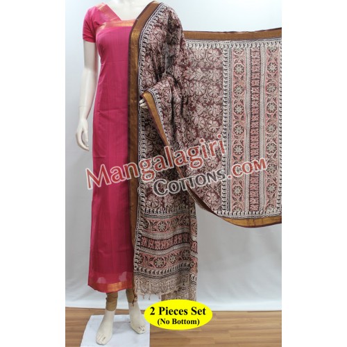 Mangalagiri Handloom Cotton Nizam Border Top with Kalamkari Silk Dupatta With Nizam Border. Unstitched 2 Pieces Set.