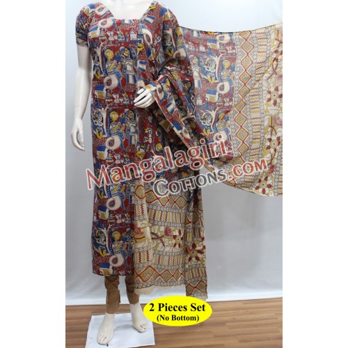 Mangalagiri Handloom Kalamkari Patiyala Dress. Unstitched 2 Pieces Set.