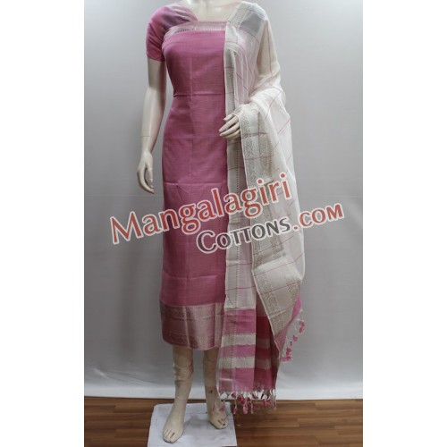 Mangalagiri Handloom Semi Pattu Kanchi Dress Material with Silver Zari Border. Unstitched 3 Pieces Set.