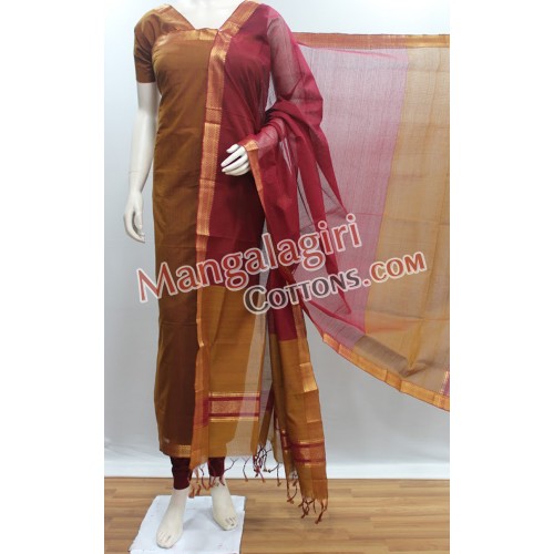 Mangalagiri Handloom Cotton Nizam Border Dress Set. Unstitched 3 Pieces Set.