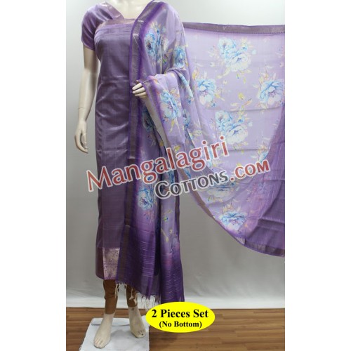 Mangalagiri Handloom Semi Pattu Top with Silver Zari Border and Semi Pattu Digital Print Dupatta. Unstitched 2 Pieces Set.