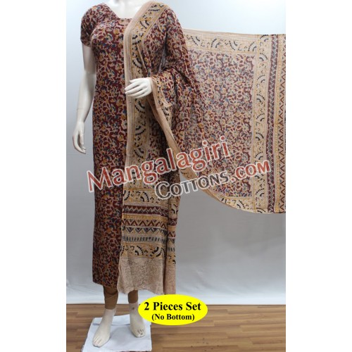 Mangalagiri Handloom Kalamkari Patiyala Dress. Unstitched 2 Pieces Set.