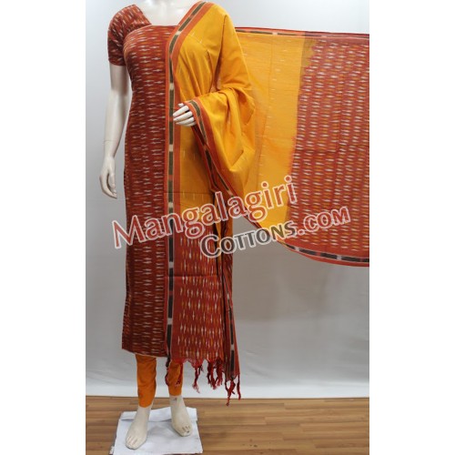 Pochampally Powerloom Ikkat Cotton Dress Material. Unstitched 3 Pieces Set.