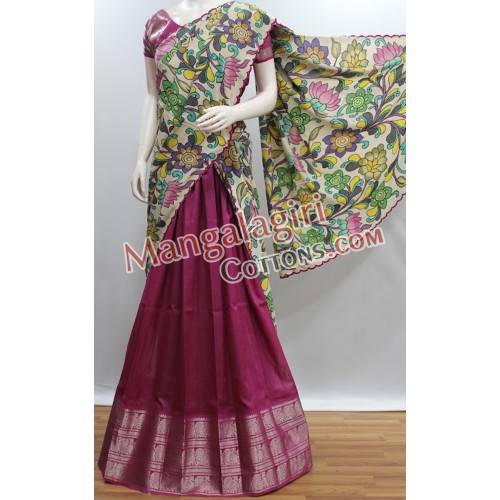 Mangalagiri Pure Handloom Semipattu Penkalamkari Langavoni Set. Set comes with unstitched blouse piece.