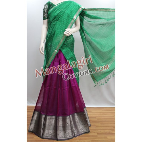 Mangalagiri Pure Handloom Semipattu Langavoni Set. Set comes with unstitched blouse piece.