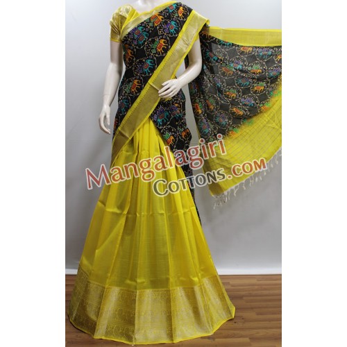 Mangalagiri Pure Handloom Semipattu Digital Print Langavoni Set. Set comes with unstitched blouse piece.