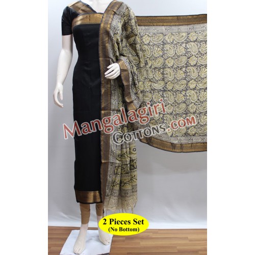 Mangalagiri Handloom Semipattu Nizam Border Top with Gold Zari Border. Kalamkari Nizam Border Dupatta. Unstitched 2 Pieces Set.