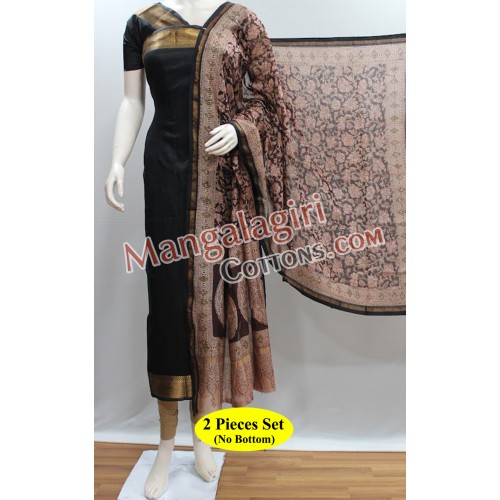 Mangalagiri Handloom Semi Pattu Top Silver Zari Border and SemiPattu Chenderi Printed Dupatta. Unstitched 2 Pieces Set.