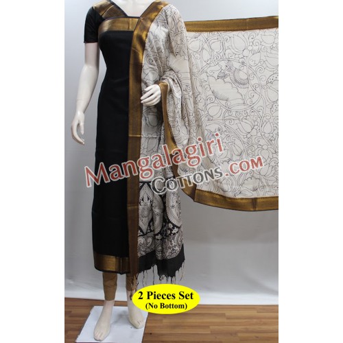 Mangalagiri Handloom SemiPattu Nizam Border Top with Kalamkari Silk Dupatta. Unstitched 2 Pieces Set.