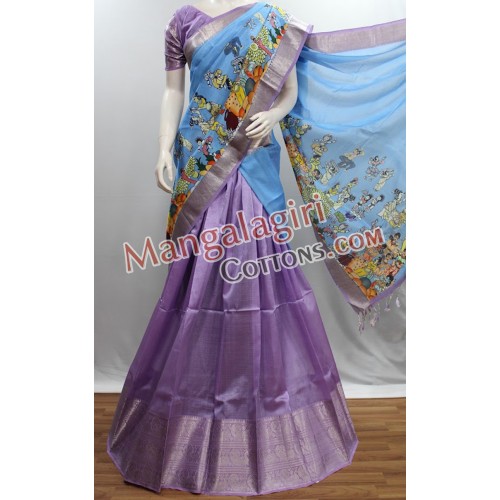 Mangalagiri Pure Handloom Semipattu Digital Print Langavoni Set. Set comes with unstitched blouse piece.