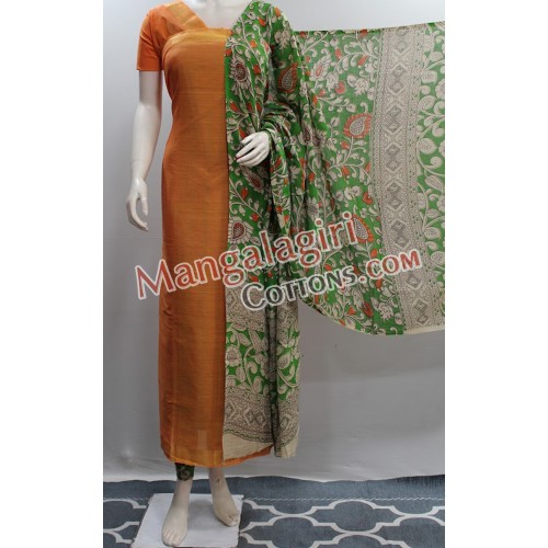 Mangalagiri Handloom Cotton Nizam Border Top with Cotton Kalamkari Bottom and Dupatta. Unstitched 3 Pieces Set.
