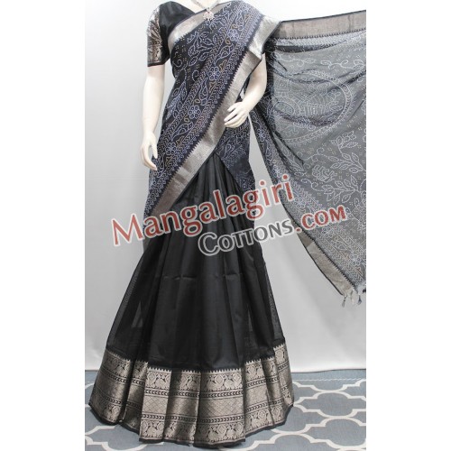 Mangalagiri Pure Handloom Semipattu Digital Print Langavoni Set. Set comes with unstitched blouse piece.