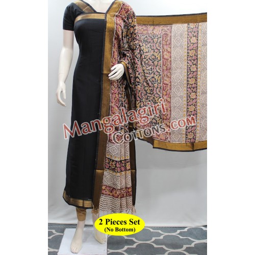 Mangalagiri Handloom Cotton Nizam Border Top with Kalamkari Hand Print Nizam Border Silk Dupatta. Unstitched 2 Pieces Set.