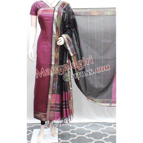 Mangalagiri Powerloom Semi Pattu Dress Material with Silver Zari Border. Unstitched 3 Pieces Set.