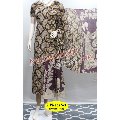 Mangalagiri Handloom Kalamkari Patiyala Dress. Unstitched 2 Pieces Set.