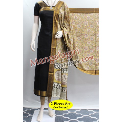 Mangalagiri Handloom Cotton Nizam Border Top with Kalamkari Hand Print Nizam Border Dupatta. Unstitched 2 Pieces Set.