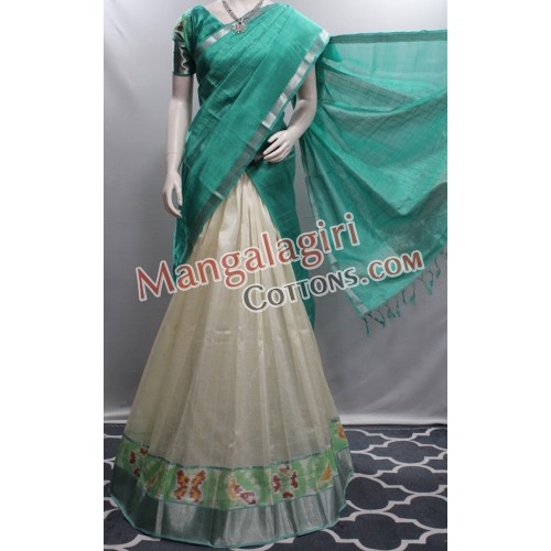 Mangalagiri Pure Handloom Semipattu Pochampally Langavoni Set. Set comes with unstitched blouse piece.