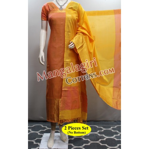Mangalagiri Handloom Semi Pattu Butta Dress Material with Gold Zari Border. Unstitched 2 Pieces Set.