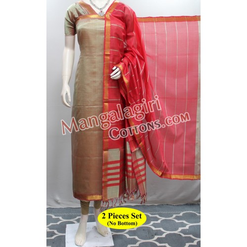 Mangalagiri Handloom Semi Pattu Dress Material with Gold Zari Border. Unstitched 2 Pieces Set.