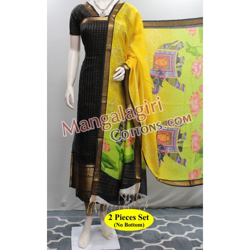 Mangalagiri Handloom Semi Pattu Kanchi Top with Silver Gold Zari Border and Semi Pattu Digital Print Dupatta. Unstitched 2 Pieces Set.