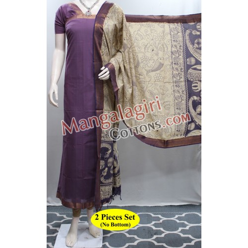 Mangalagiri Handloom Cotton Nizam Border Top with Kalamkari Nizam Border Screen Print Dupatta. Unstitched 2 Pieces Set.