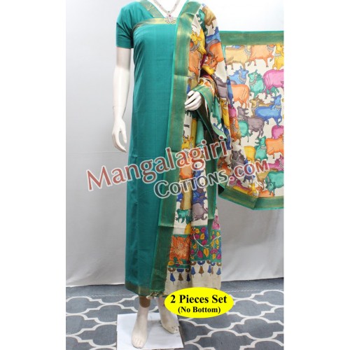 Mangalagiri Handloom Cotton Nizam Border Top with Pen Kalamkari Dupatta. Unstitched 2 Pieces Set.
