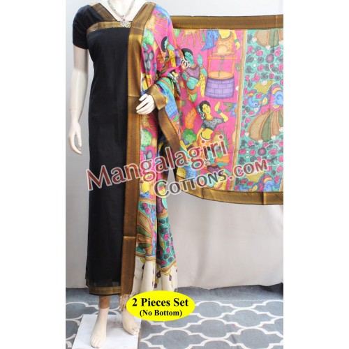 Mangalagiri Handloom Cotton Nizam Border Top with PenKalamkari Dupatta. Unstitched 2 Pieces Set.