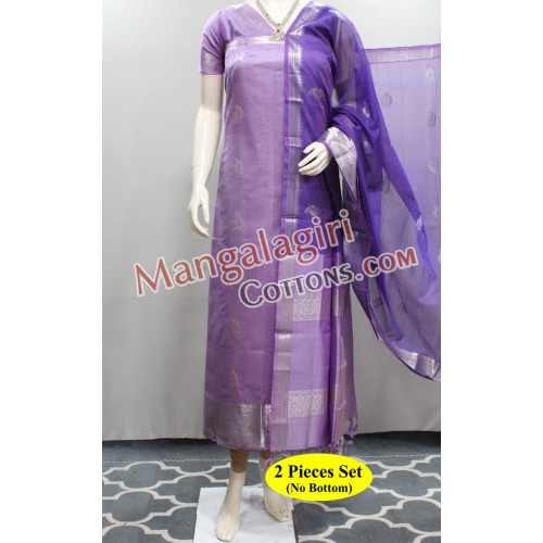 Mangalagiri Handloom Semi Pattu Butta Dress Material with Silver Zari Border. Unstitched 2 Pieces Set.