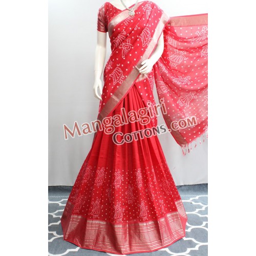 Mangalagiri Pure Handloom Semipattu Digital Print Langavoni Set. Set comes with unstitched blouse piece.