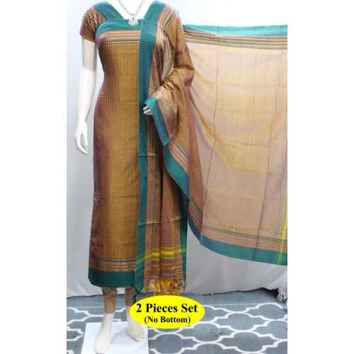 Mangalagiri Powerloom Cotton Dress Material. Unstitched 2 Pieces Set.