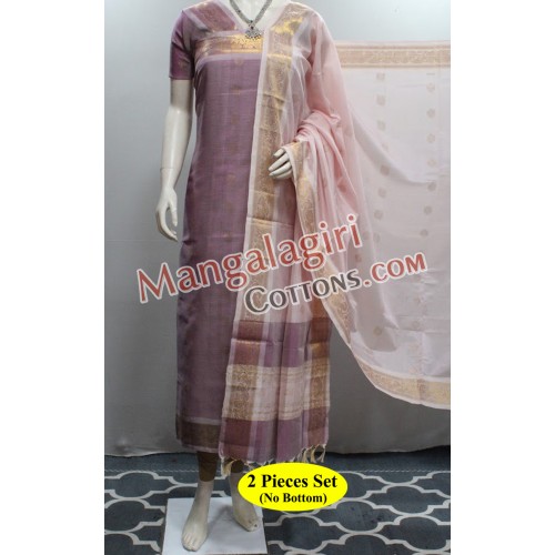 Mangalagiri Handloom Semi Pattu Dress Material with Gold Zari Border. Unstitched 2 Pieces Set.