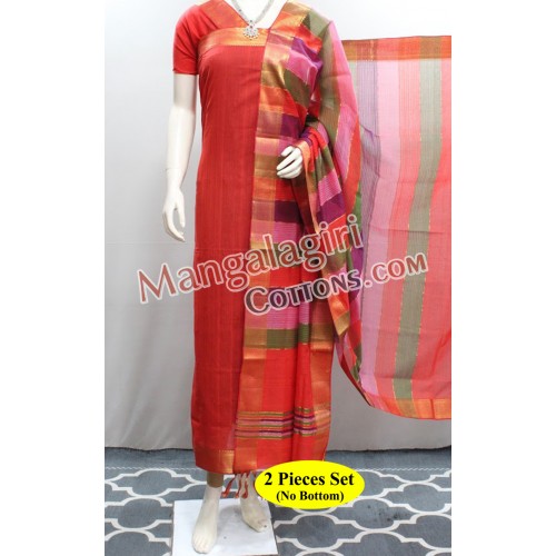 Mangalagiri Handloom Pure Cotton Dress Material with Gold Zari Border. Unstitched 2 Pieces Set.