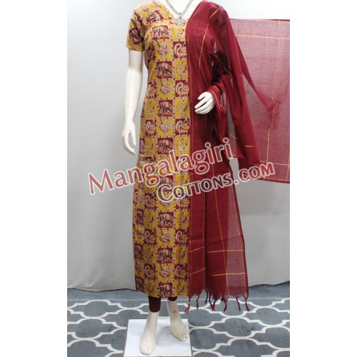 Mangalagiri Powerloom kalamkari Cotton Dress Material. Unstitched 3 Pieces Set.